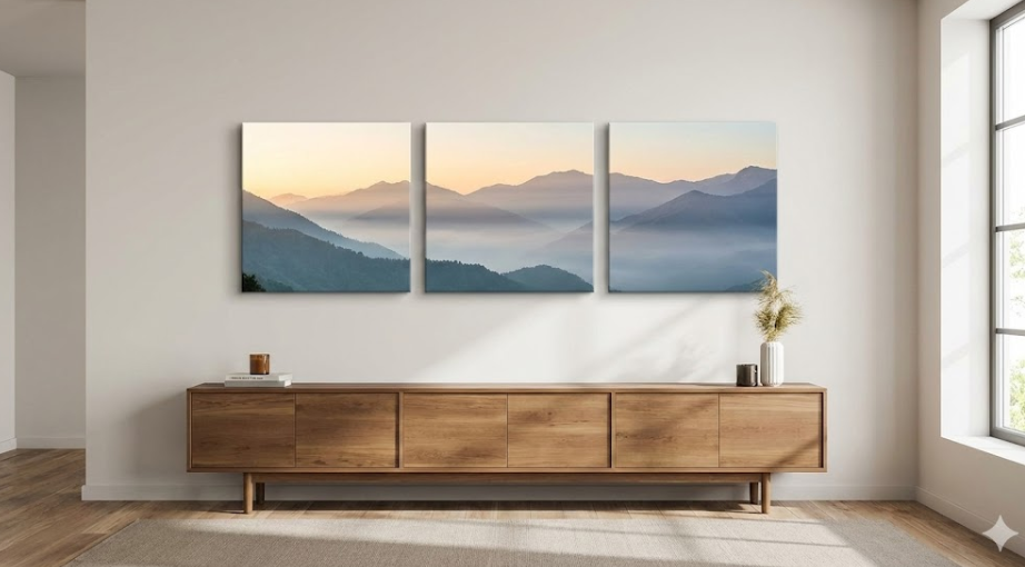 Why settle for one canvas print when you can tell a story across several? This bundle takes a panoramic concept and slices it into distinct panels. This technique adds depth and an architectural element to the image, tricking the eye into seeing the wall as a window.
