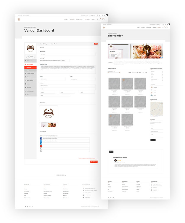 *WC Marketplace and WC Vendors are FREE third-party plugins fully integrated with custom Rigid theme styles and features.